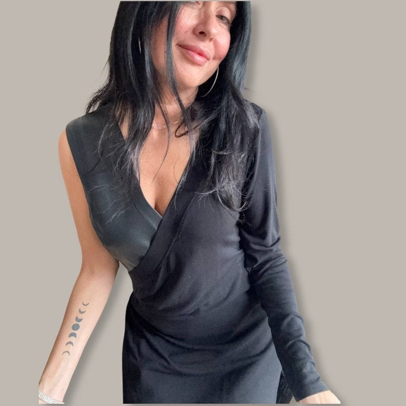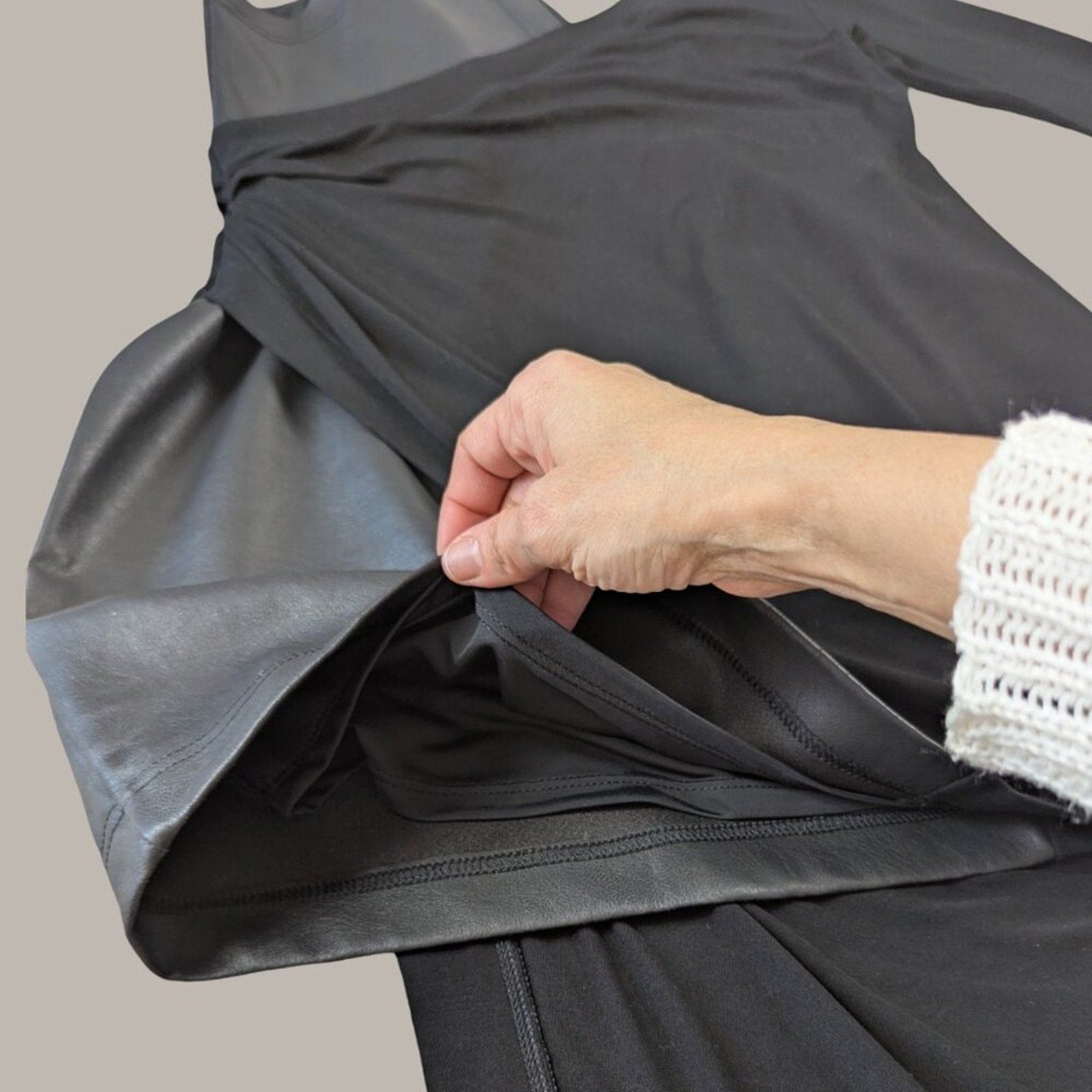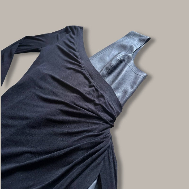 Dual Fabrics - Faux Leather and Matte Jersey Knit